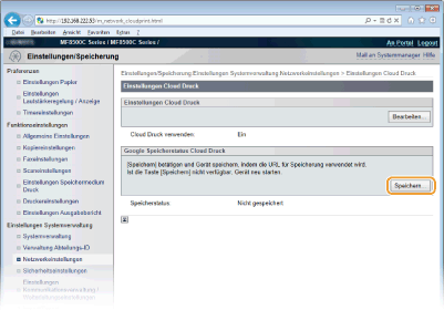 Klicken Sie in [Google Speicherstatus Cloud Druck] auf [Speichern...].