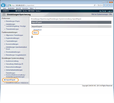 Klicken Sie auf [Import/Export]