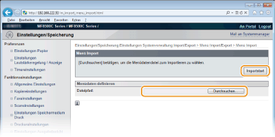 Die angegebenen Einstellungen werden in das Gerät importiert.