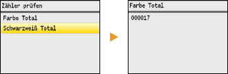 (Status Monitor) <Gerätestatus> <Zähler prüfen> <Farbe Total> oder <Schwarzweiß Total>
